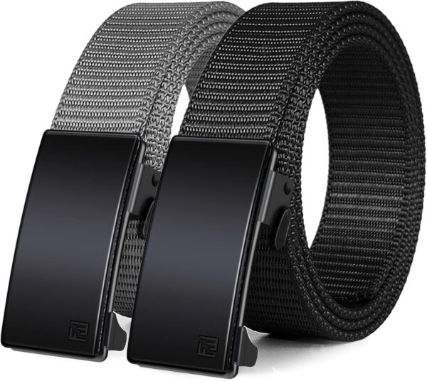 2 Pack Nylon Ratchet Belts for Men, Mens Belts Casual with Automatic Buckle, No Holes Invisible Belt for Men