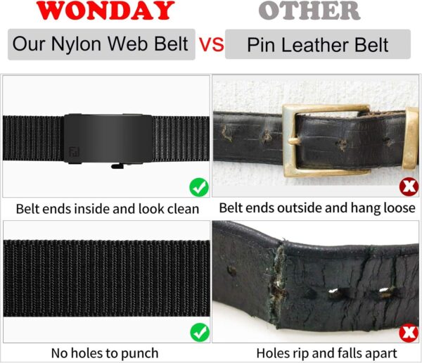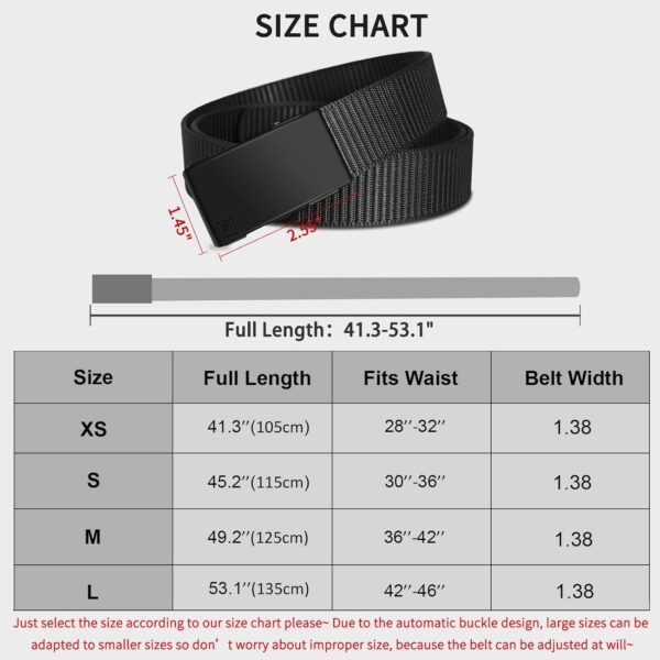 Introducing our 2 Pack Nylon Ratchet Belts for Men, the ultimate combination of style and functionality. These mens belts are designed with a sleek automatic buckle, allowing for quick and easy adjustments without the need for traditional belt holes. The no holes design creates a seamless and invisible look, perfect for any casual outfit.